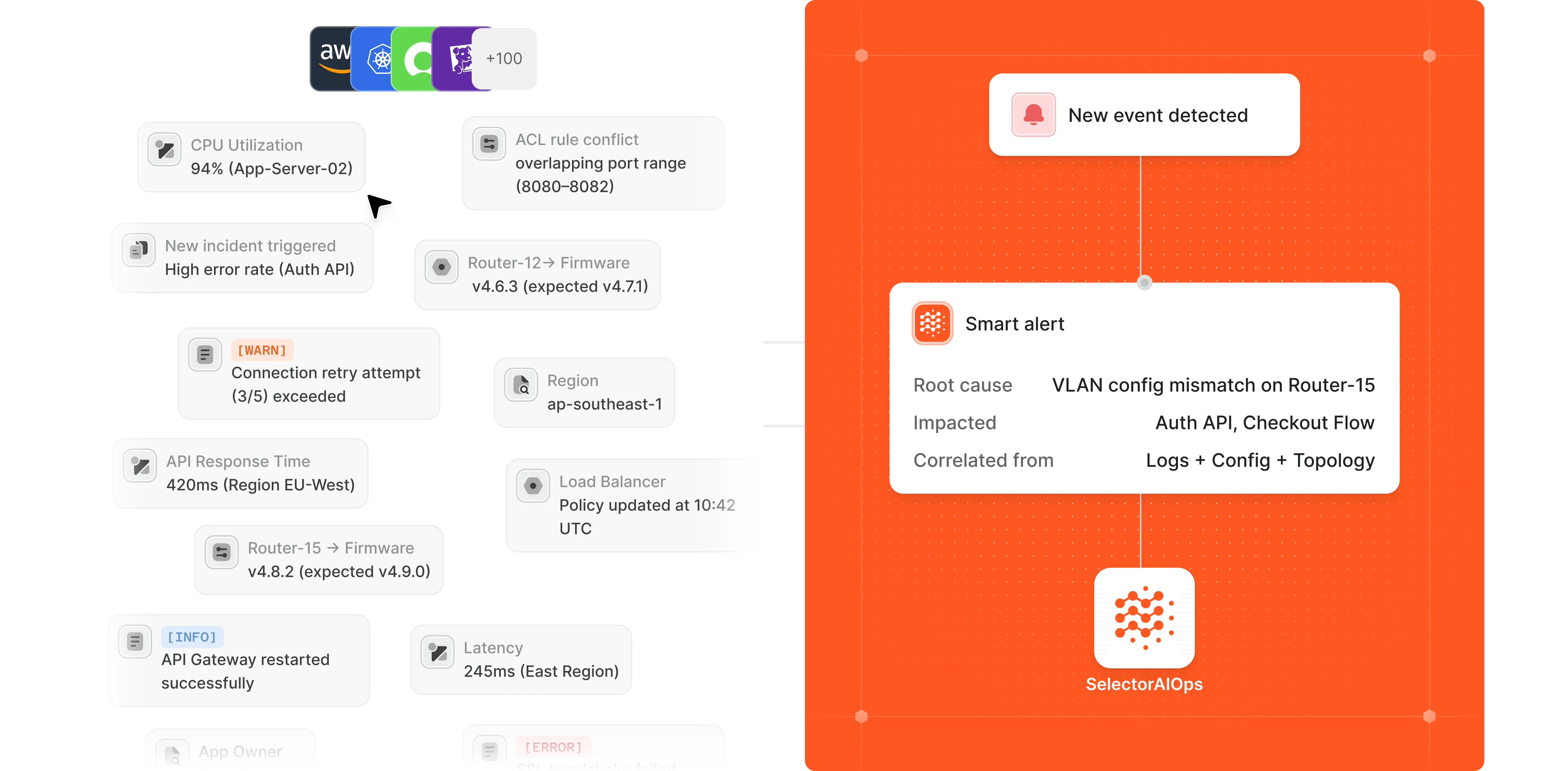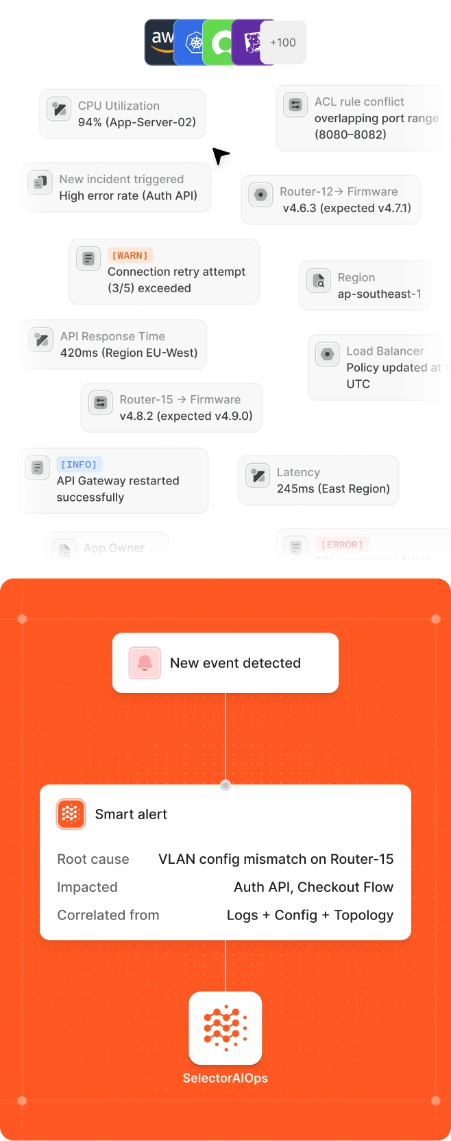 Selector filters and correlates alerts in real time to reduce fatigue and cut noise. By prioritizing high-impact incidents and eliminating redundancy, it keeps teams focused on true RCA.